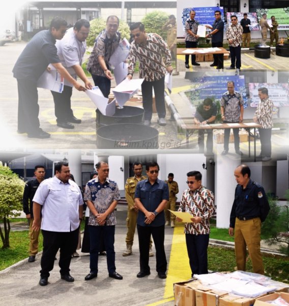 Samarinda, kaltim.kpu.go.id – Komisi Pemilihan Umum (KPU) Provinsi Kalimantan Timur telah melaksanakan Pemusnahan Barang Sisa Eks Logistik Pemilu dan Pemilihan Tahun 2024 . Pemusnahan ini merupakan tindak lanjut dari surat Sekretaris Jenderal KPU RI Nomor 3881/TU.05.2-SD/03/2025 perihal Persetujuan Pemusnahan Arsip pada KPU Provinsi Kalimantan Timur. Penghapusan Barang Milik Negara (BMN) ini dilakukan dengan cara dibakar di halaman parkir kantor KPU Provinsi Kalimantan Timur. Kegiatan pemusnahan ini dilakukan oleh Anggota KPU Provinsi Kalimantan Timur, Abdul Qayyim Rasyid dan Asmadi Asnan. Turut hadir sebagai Saksi : Suherianto (Subdit Politik Dit/K Polda Kaltim), sebagai perwakilan dari Kepolisian Daerah Kalimantan Timur (Polda Kaltim) . M. Iqbal, sebagai perwakilan dari Badan Pengawas Pemilu (Bawaslu) Provinsi Kalimantan Timur . Acara pemusnahan ini diikuti oleh Pejabat Struktural KPU Provinsi Kalimantan Timur, serta staf pada Subbagian Umum dan Logistik KPU Provinsi Kalimantan Timur. ....