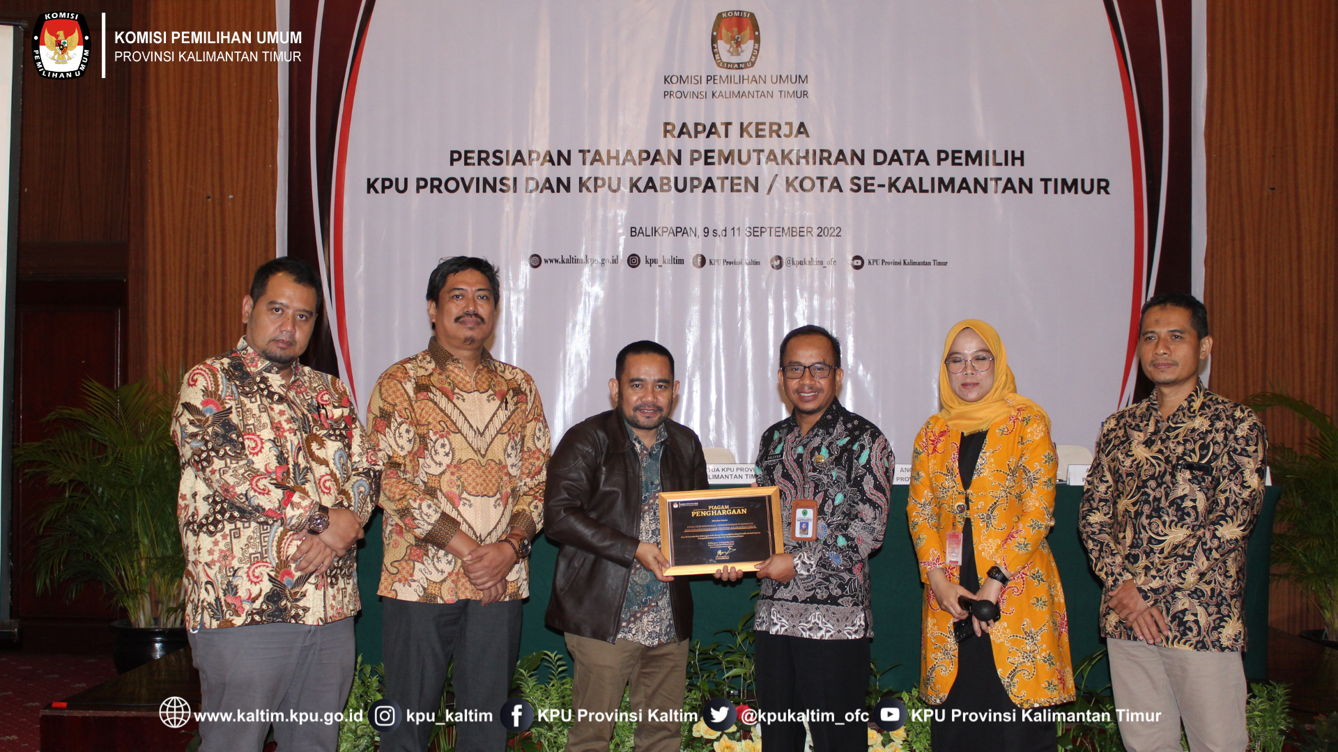 Kegiatan Rapat Kerja ditutup dengan memberikan penghargaan kepada DKP3A. (Tim Medsos KPU Kaltim)