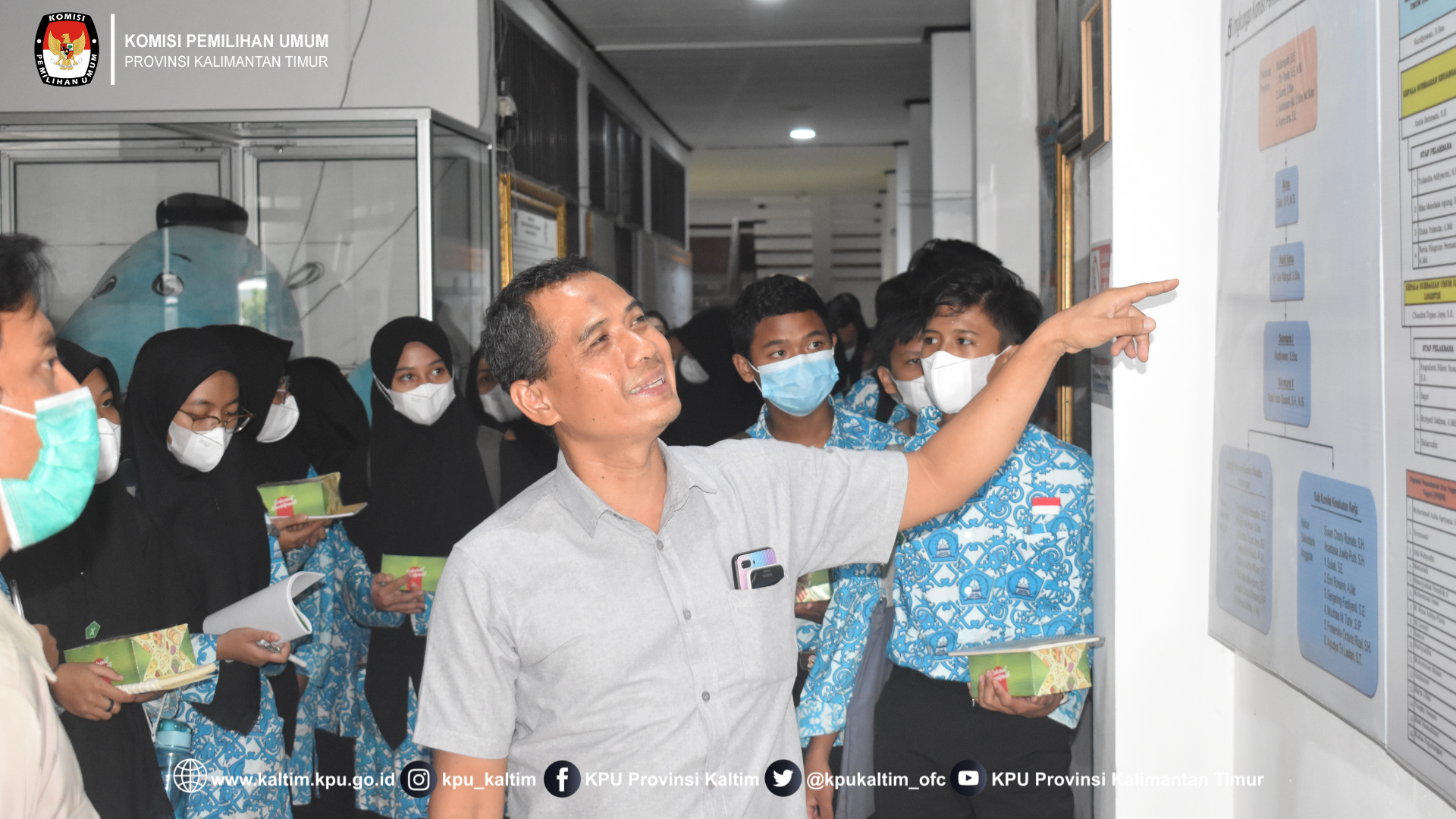 Samarinda, kaltim.kpu.go.id - KPU Provinsi Kalimantan Timur menerima kunjungan dari SMA Budi Luhur Samarinda, kegiatan tersebut merupakan projek SMA Budi Luhur dalam rangka penguatan Pancasila dengan tema suara demokrasi, Rabu (10/8/22)
