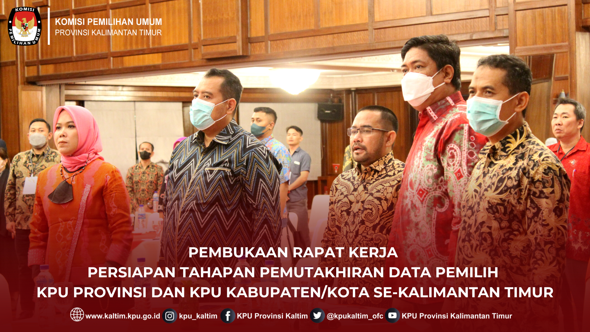 Rapat Kerja dibuka langsung oleh Ketua KPU Provinsi Kalimantan Timur, Rudiansyah, yang hadir langsung didampingi seluruh Anggota KPU Provinsi Kalimantan Timur. Peserta kegiatan Rapat Kerja di antaranya Ketua dan Anggota KPU Divisi Perencanaan, Data dan Informasi serta Kepala Sub Bagian Perencanaan, Data dan Informasi beserta admin/operator Sidalih KPU Kabupaten/Kota Se-Kalimantan Timur.