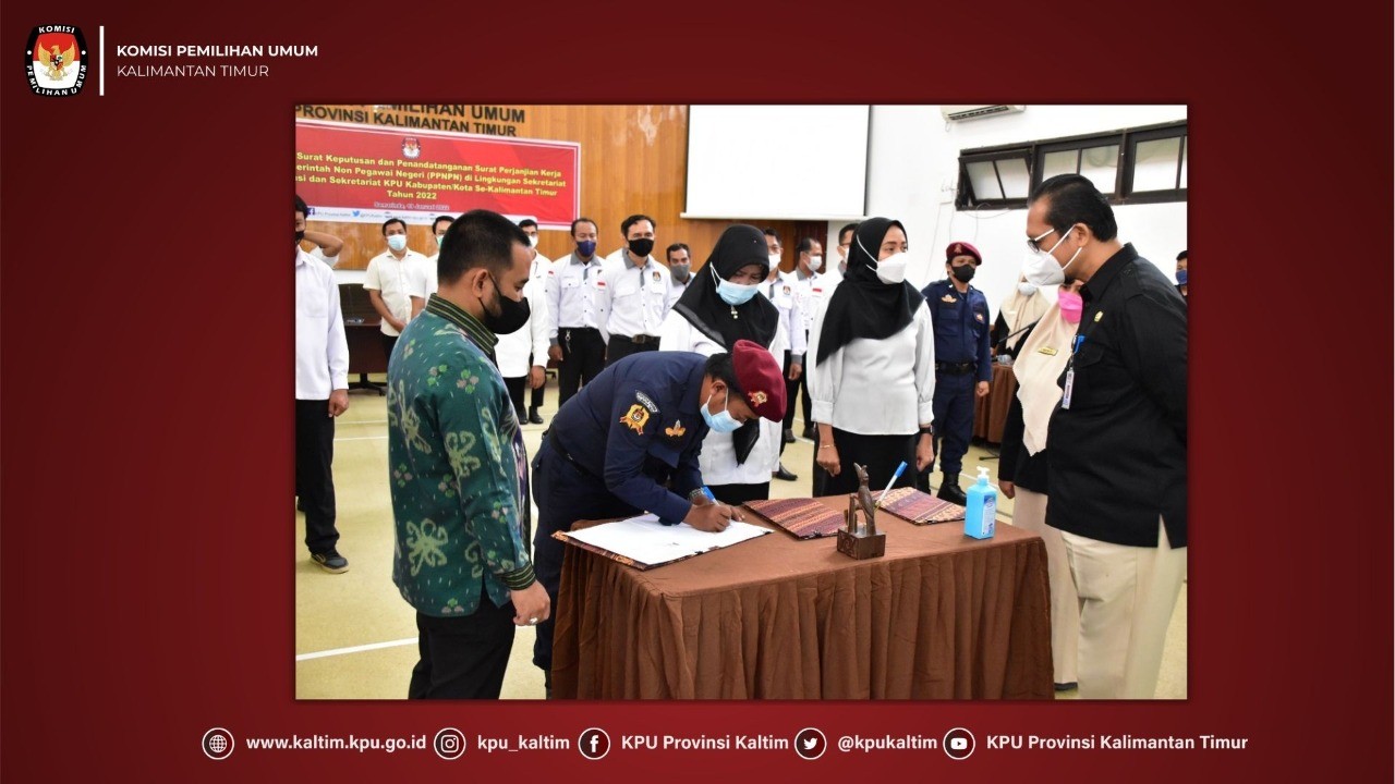 Penyerahan SK & Penandatanganan SPK PPNPN di Lingkungan Sekretariat KPU Provinsi dan Kabupaten/Kota Se Kalimantan Timur Tahun 2022