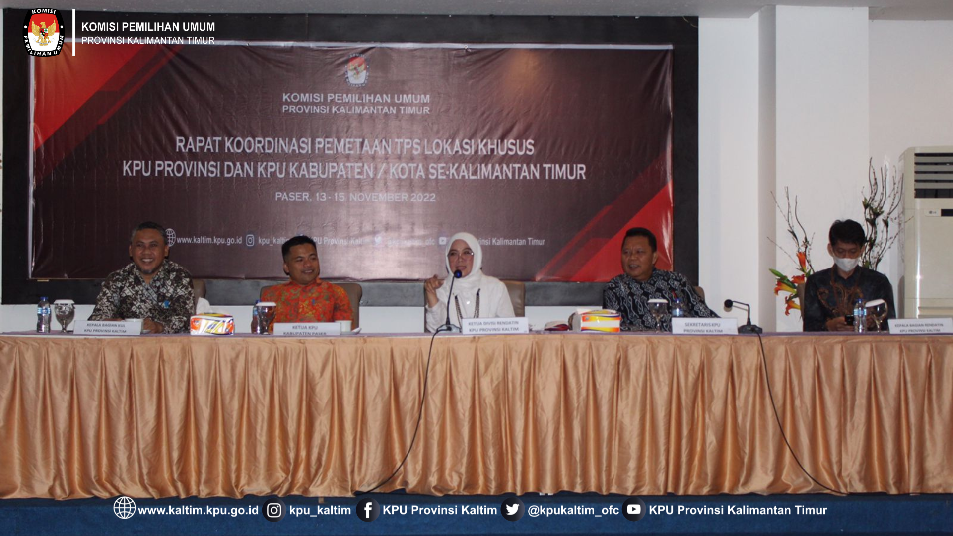 Paser, kaltim.kpu.go.id - KPU Provinsi Kalimantan telah melaksanakan kegiatan Rapat Koordinasi Pemetaan TPS Lokasi Khusus bersama KPU Kabupaten/Kota Se-Kalimantan Timur pada tanggal 13 sampai dengan 15 November 2022.