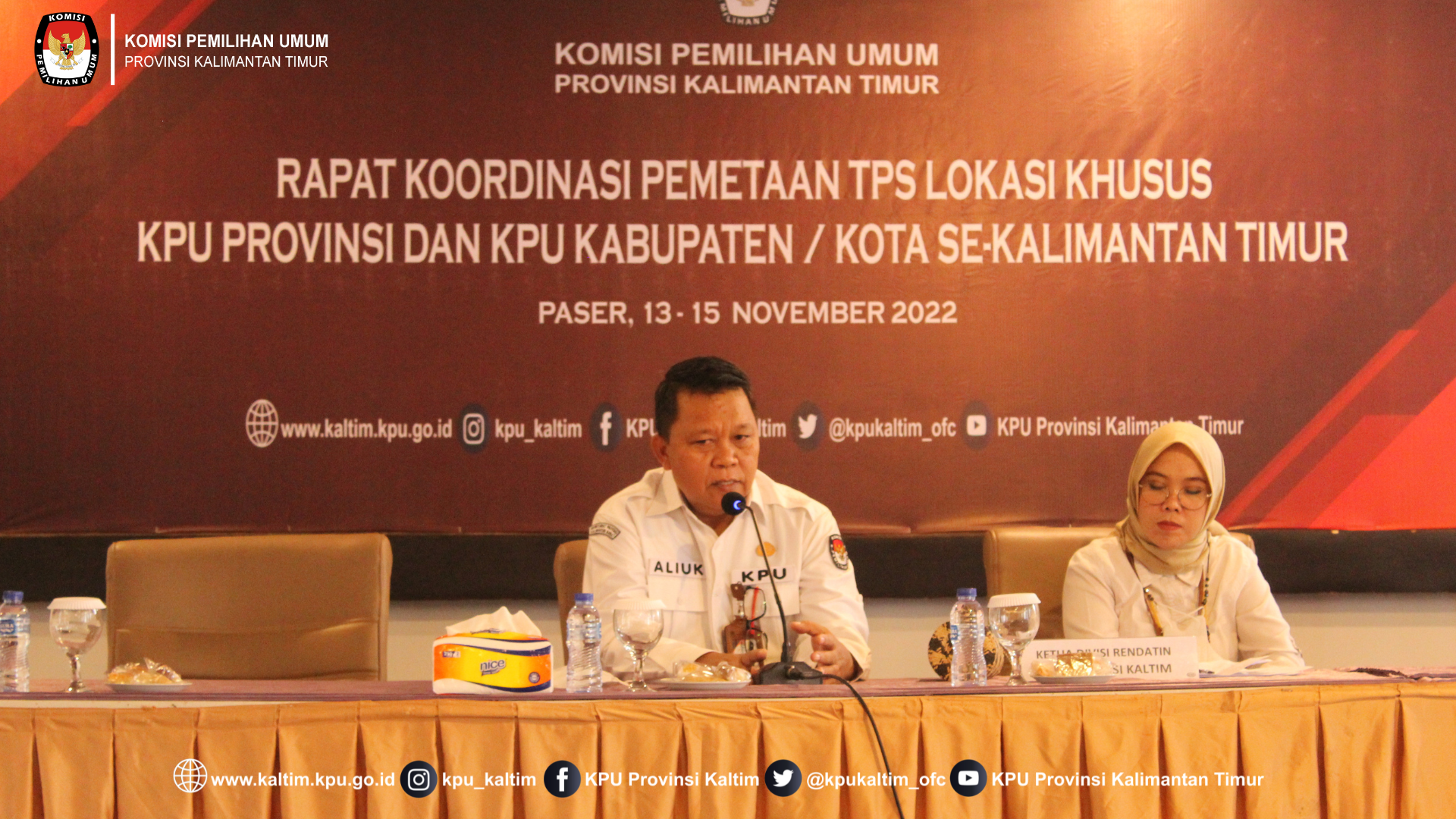 Bertempat di Hotel Kyriad Sadurengas kabupaten Paser, Rapat Koordinasi dibuka pada Minggu (13/11/2022) oleh Ketua KPU Provinsi Kalimantan Timur yang diwakilkan oleh Ketua Divisi Perencanaan, Data dan Informasi KPU Provinsi Kalimantan Timur, Iffa Rosita. Hadir mendampingi Sekretaris beserta jajaran strukutral dan panitia penyelenggara KPU Provinsi Kalimantan Timur. Dalam arahannya Iffa Rosita menyampaikan bahwa langkah awal KPU Kabupaten/Kota untuk dapat mengidentifikasi lokasi-lokasi khusus untuk didirikan TPS serta target untuk tahun 2024 yaitu jumlah DPK kecil. Hadir juga sebagai tamu undangan Ketua dan Anggota serta Sekretaris KPU Kabupaten Paser. Dalam kesempatan tersebut, Ketua KPU Kabupaten Paser, Abdul Qayyim, menyampaikan ucapan terima kasih kepada KPU Provinsi Kalimantan Timur yang telah memberi kesempatan kepada kabupaten Paser untuk menjadi tuan rumah serta berharap dengan adanya kegiatan ini ke depannya memungkinkan agar divisi lainnya dapat menyelenggarakan kegiatan di kabupaten Paser.