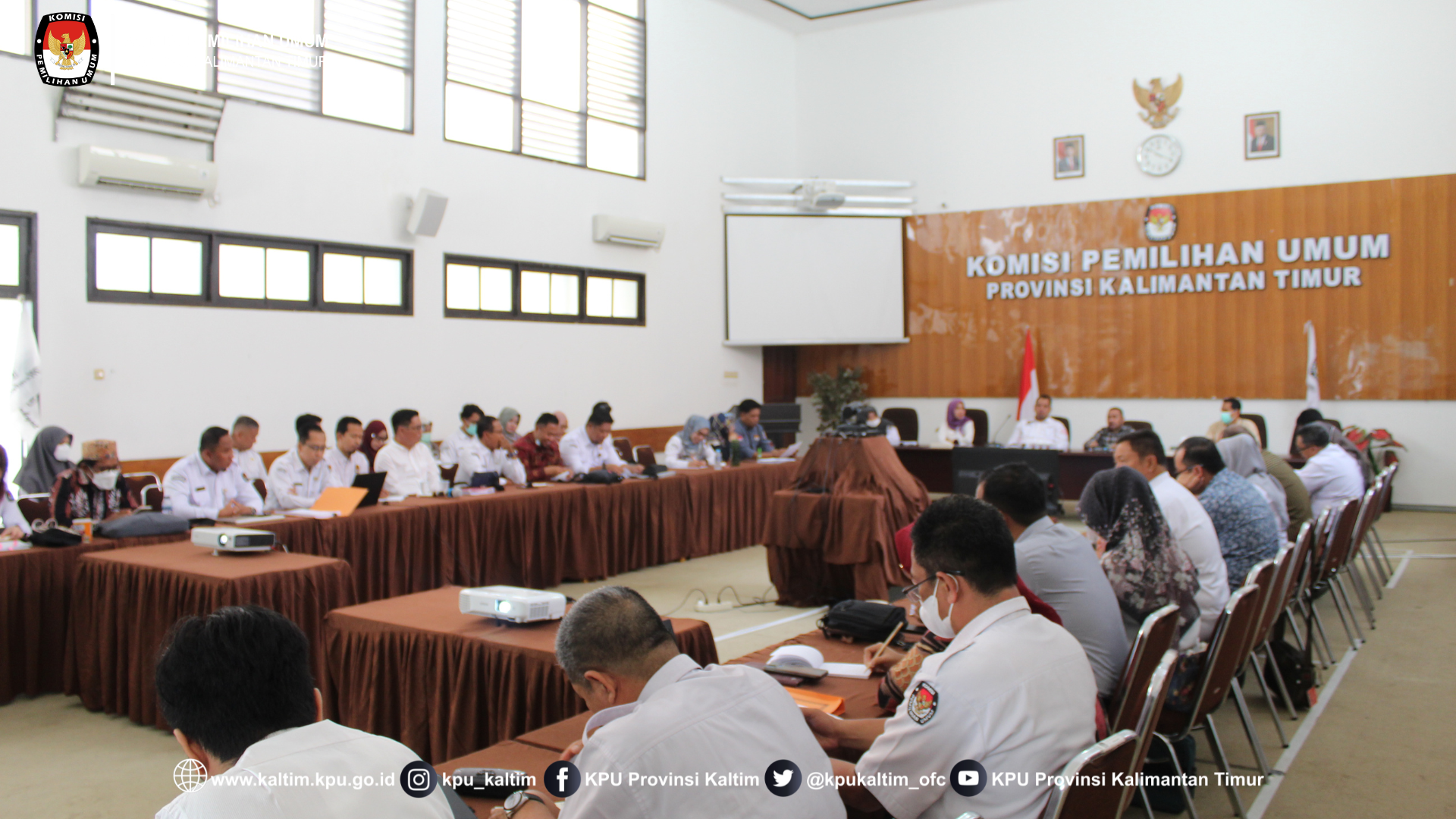 Samarinda, kaltim.kpu.go.id - KPU Provinsi Kalimantan Timur telah melaksanakan Rapat Pleno Pengisian Kartu Kendali Pertanggungjawaban SPIP Tingkat Wilayah Periode Bulan September Tahun 2022 di Aula KPU Provinsi Kalimantan Timur dengan dihadiri oleh Ketua dan Anggota Komisioner, pejabat Struktural/Fungsional serta KPU Kabupaten/Kota se-Kalimantan Timur dengan dibuka oleh Ketua KPU Provinsi Kalimantan Timur Bapak Rudiansyah (14/10/2022). (Tim Medsos KPU Kaltim)