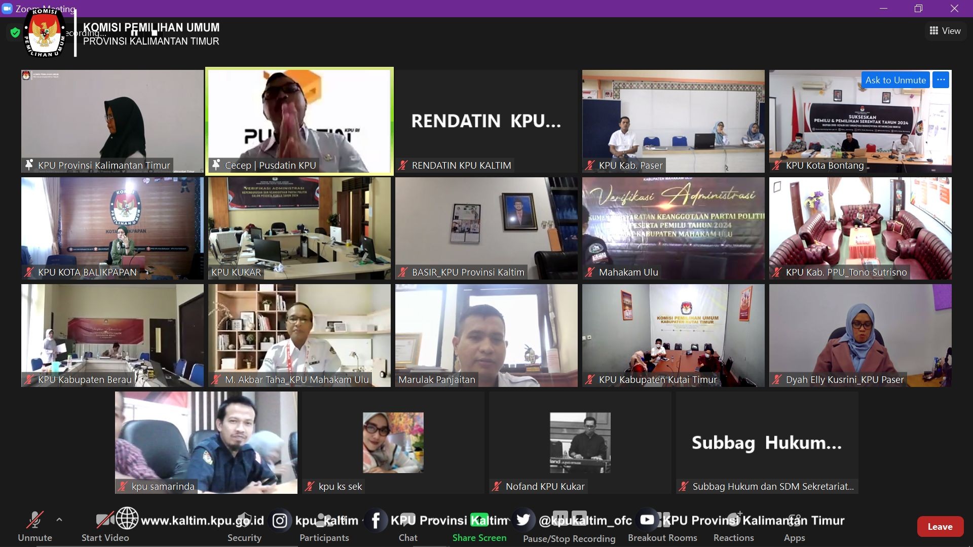 Samarinda, kaltim.kpu.go.id - KPU Provinsi Kalimantan Timur menyelenggarakan Sosialisasi Keputusan KPU Nomor 191 Tahun 2022 Tentang Pedoman Teknis Penyelenggaraan Sertifikat Elektronik KPU di Lingkungan KPU Provinsi Kalimantan Timur dan KPU Kabupaten/Kota Se-Kalimantan Timur secara daring, Kamis (25/8/2022).