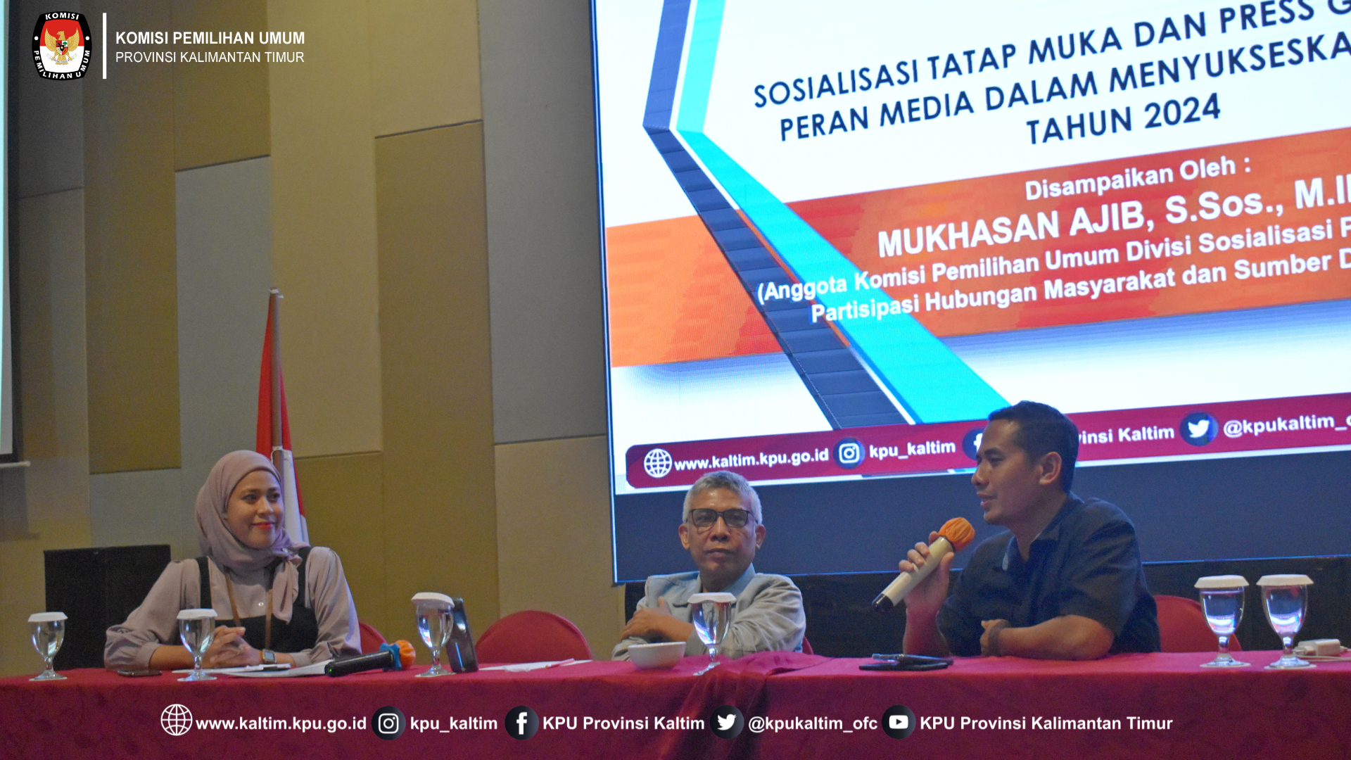 Samarinda, kaltim.kpu.go.id - KPU Provinsi Kalimantan Timur melaksanakan kegiatan Sosialisasi Tatap Muka dan Press Gathering Peran Media dalam Menyukseskan Pemilihan Umum Tahun 2024 pada Jumat, 16 Desember 2022 bertempat di Hotel Harris Samarinda.