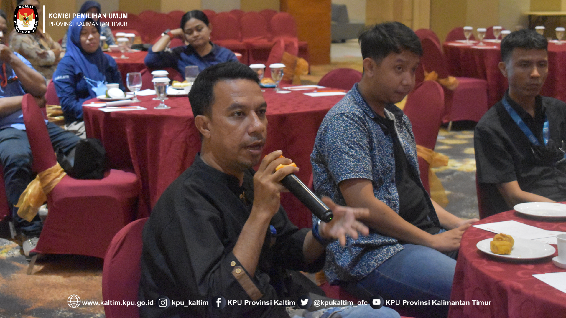 Kegiatan dibuka oleh Plh. Ketua KPU Provinsi Kalimantan Timur, Fahmi Idris, menjelaskan peran media sangat penting dalam menyampaikan informasi, berita kepemiluan khususnya yang terjadi di Provinsi Kalimantan Timur, kegiatan dipandu oleh moderator RRI marga rahayu, dan narasumber dari media, Charles Siahaan, serta narasumber dari KPU Provinsi Kalimantan Timur, Divisi Sosdiklih, Parmas, SDM, kegiatan berjalan dengan lancar, antusias, dan ditutup dengan foto bersama. (Tim Medsos KPU Kaltim)
