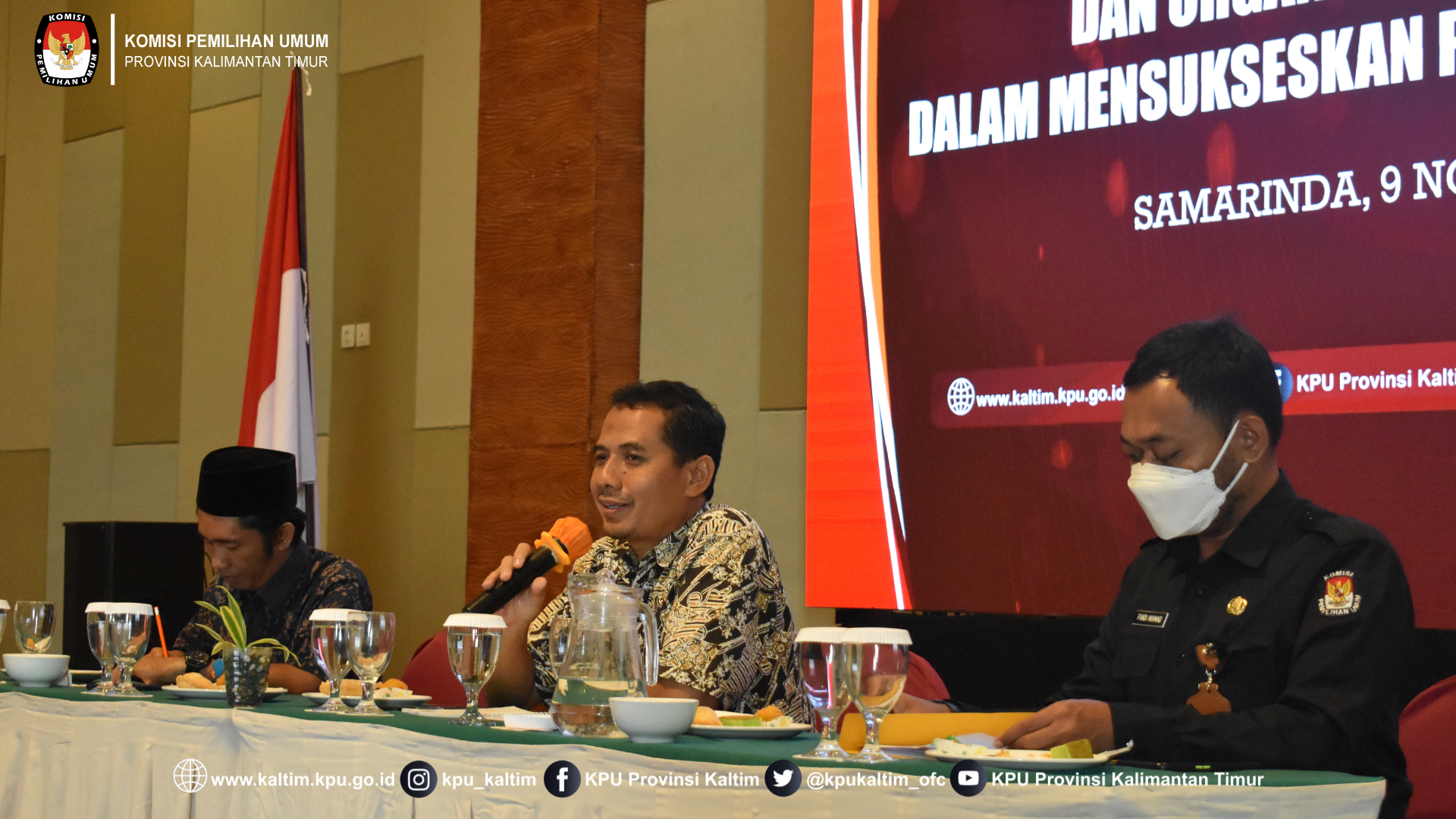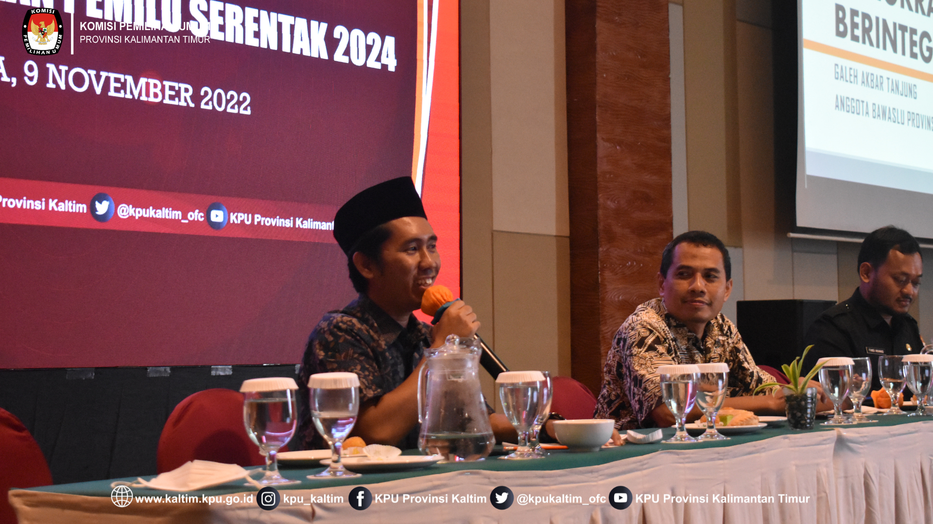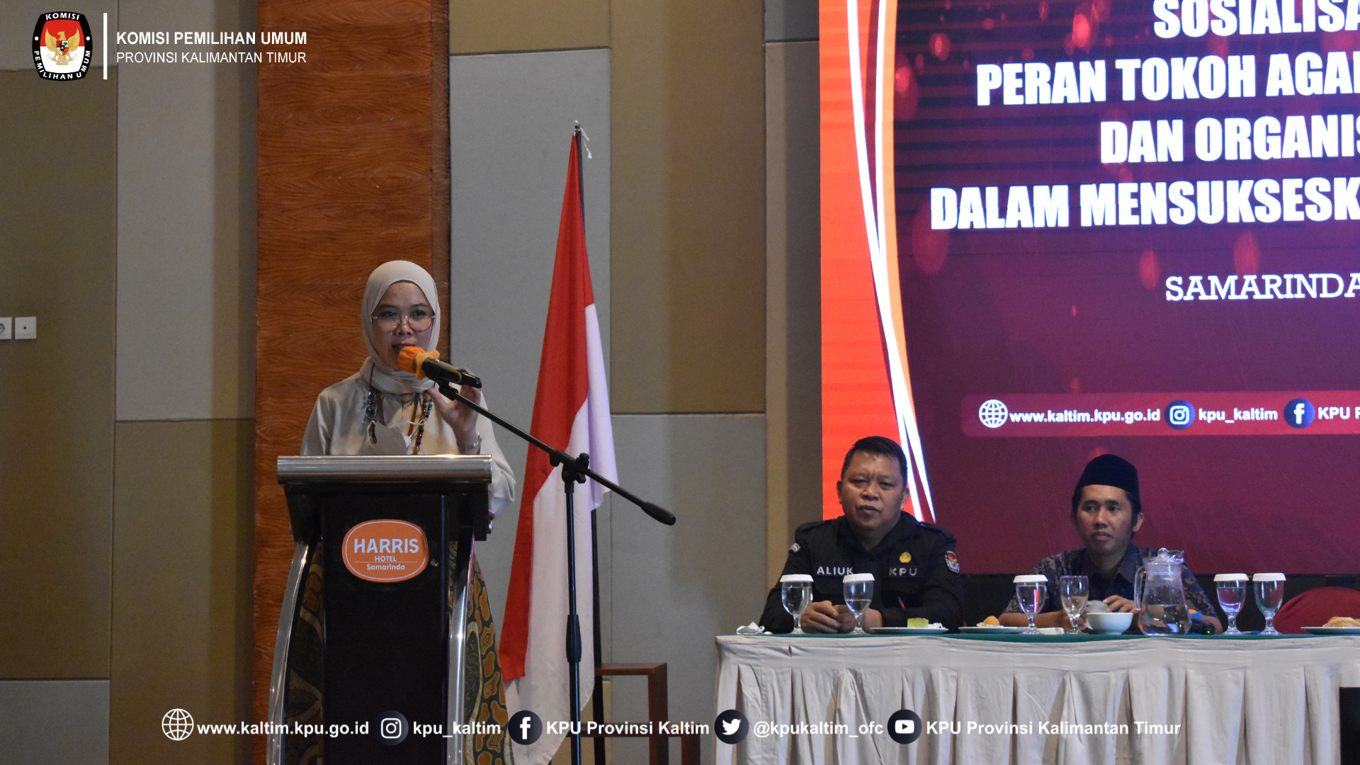 Samarinda, kaltim.kpu.go.id - Komisi Pemilihan Umum Provinsi Kalimantan Timur melaksanakan Sosialisasi Tatap Muka kepada Tokoh Agama, Tokoh Masyarakat, Organisasi Kemasyarakatan, di Haris Hotel, Samarinda, Rabu (9/11/2022). Turut hadir dalam kegiatan jajaran KPU Provinsi Kalimantan Timur Plh.Ketua, Anggota, Sekretaris dan Pejabat Struktural KPU Provinsi Kalimantan Timur, serta tamu undangan dari unsur Tokoh Agama, Tokoh Masyarakat, Organisasi Kemasyarakatan.