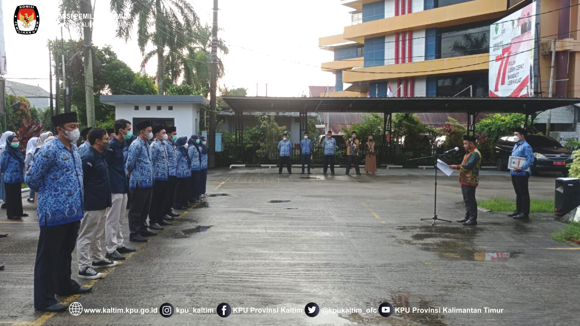 Samarinda, kaltim.kpu.go.id - KPU Provinsi Kalimantan Timur melaksanakan Upacara Peringatan Hari Kemerdekaan Republik Indonesia ke-77 di Kantor KPU Provinsi Kalimantan Timur, Rabu (17/8/22).