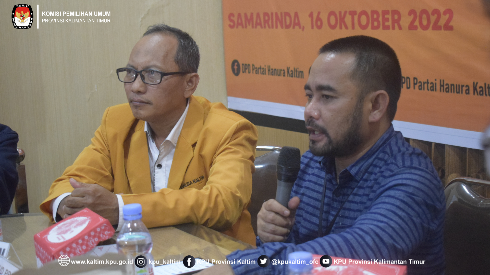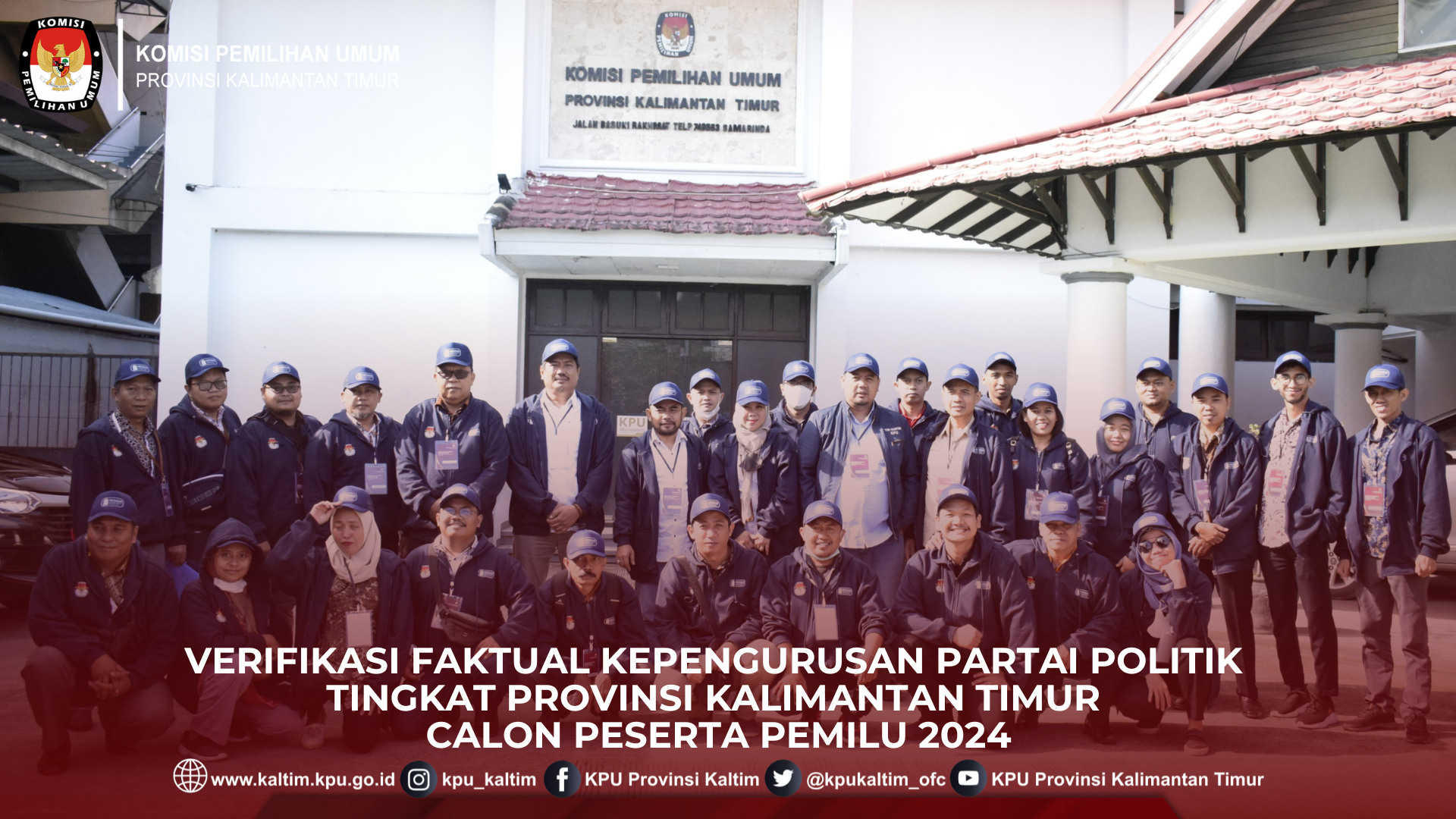 Proses verifikasi faktual tingkat Provinsi Kaltim dilakukan selama dua hari, Minggu dan Senin tanggal 16 dan 17 Oktober 2022, hari pertama 4 Parpol yaitu Partai Buruh, Partai Gelombang Rakyat Indonesia (Gelora), Partai Garda Perubahan Indonesia (Garuda) dan Partai Bulan Bintang (PBB). Dilanjut hari kedua sebanyak 5 Parpol yaitu, Partai Ummat, Partai Kebangkitan Nusantara (PKN), Partai Persatuan Indonesia (Perindo), Partai Solidaritas Indonesia (PSI) dan Partai Hati Nurani Rakyat (Hanura).