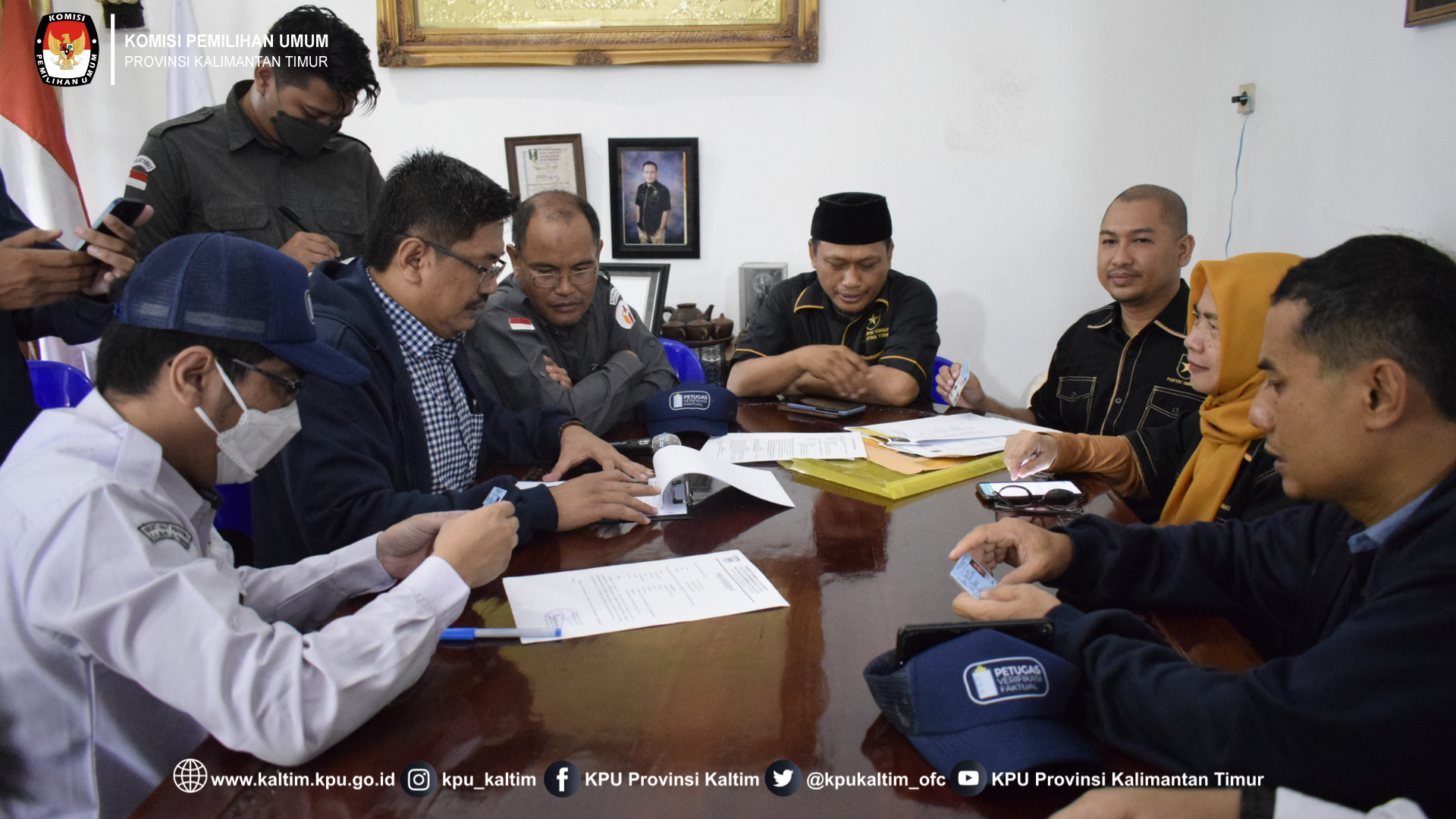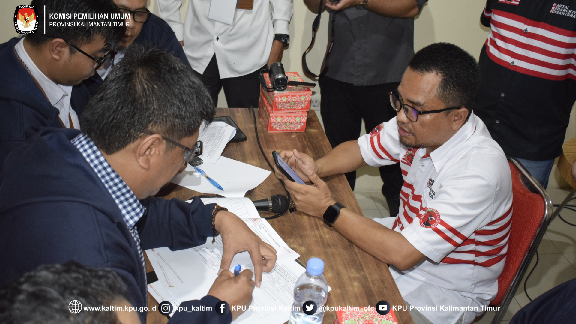 Verifikasi faktual dilaksanakan langsung oleh komisioner KPU Kaltim, Suardi, Fahmi Idris, Mukhasan Ajib dan Iffa Rosita didampingi sekretaris KPU Kaltim Lourentius Aliuk dibantu tim verifikator dari jajaran sekretariat dengan disaksikan Bawaslu Kaltim, dihadiri langsung Ketua Hari Dermanto, Muhammad Ramli, Galeh Akbar Tanjung, Ebin Marwi dan Wamustofa Hamzah serta jajaran Kepolisian dari Polda Kaltim dan Polres Samarinda. (Tim Medsos KPU Kaltim)