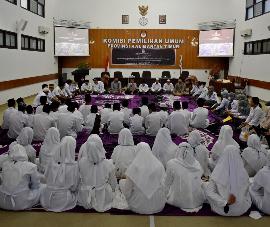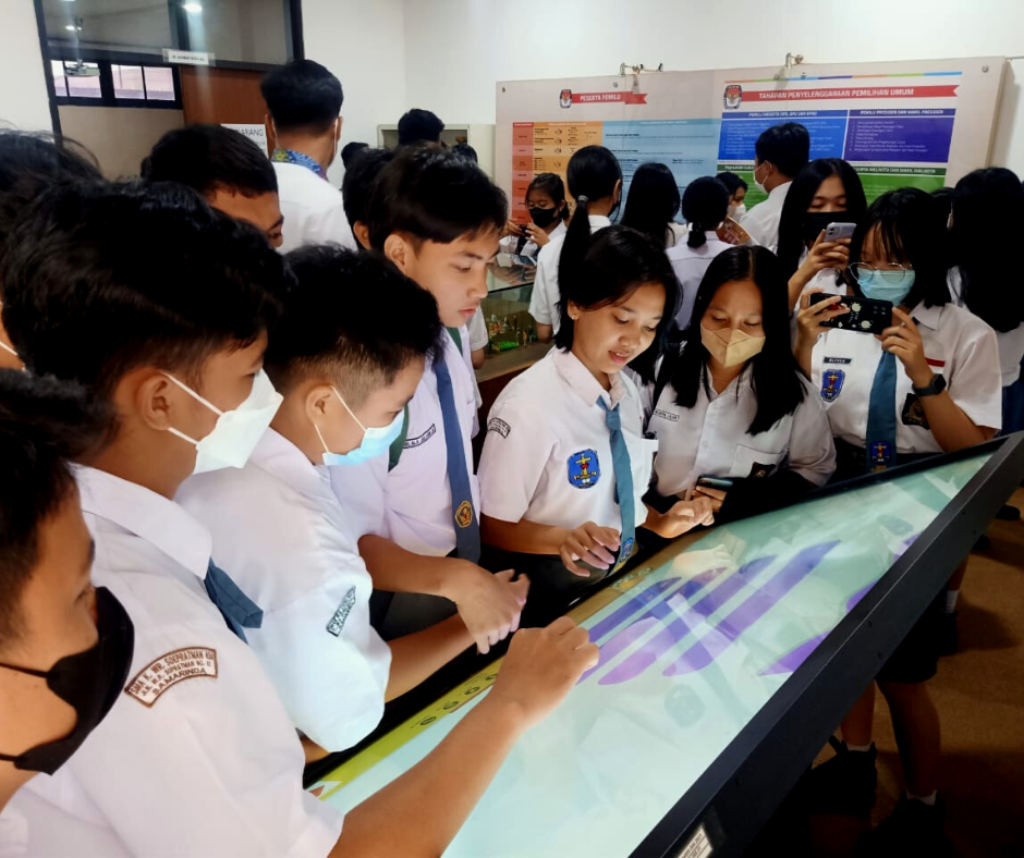 Samarinda, kaltim.kpu.go.id - KPU Provinsi Kalimantan Timur dan KPU Kota Samarinda menerima kunjungan Rumah Pintar Pemilu Siswa Siswi SMA Katolik WR Soepratman Samarinda dalam rangka program merdeka belajar dan Pendidikan Pemilih Pemula, bertempat di Aula dan Lamin Pintar RPP KPU Provinsi Kalimantan Timur, Rabu (31/8/2022). Kegiatan dipandu ketua Divisi Sosdiklih Parmas dan SDM KPU Provinsi Kalimantan Timur Mukhasan Ajib dan Ketua Divisi Sosdiklih Parmas dan SDM KPU Kota Samarinda, Najib Muhammad. Siswa siswi dari kelas X (sepuluh) yg saat ini rata-rata berusia 15 dan 16 tahun calon pemilih pemula pada Pemilu serentak tahun 2024 telah menginjak usia 17 tahun, mengikuti kegiatan tersebut dengan antusias dan penuh semangat menyimak penjelasan sejarah perkembangan politik dan kepemiluan Indonesia sejak masa orde lama, orde baru hingga reformasi. Dalam kegiatan tersebut para siswa juga didampingi guru pendamping dari SMA Katolik W.R Soepratman Samarinda, dan dibagi dalam dua gelombang masing-masing 60 siswa gelombang satu pagi, dan 60 siswa di gelombang dua siang. (Tim Medsos KPU Kaltim)