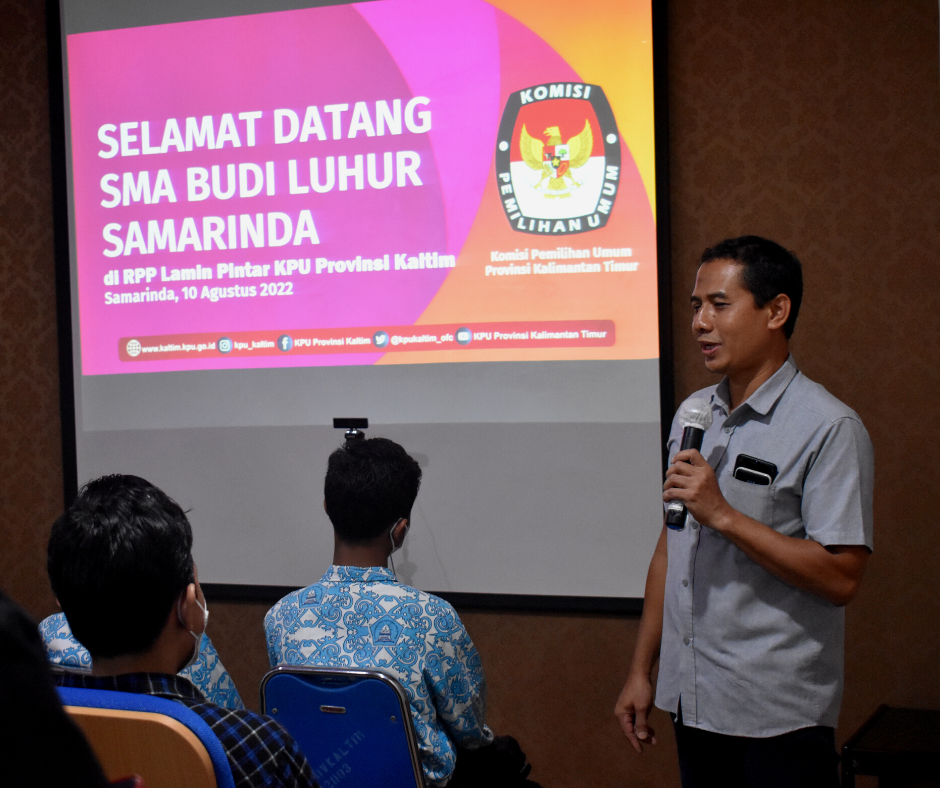 Samarinda, kaltim.kpu.go.id - KPU Provinsi Kalimantan Timur menerima kunjungan dari SMA Budi Luhur Samarinda, kegiatan tersebut merupakan projek SMA Budi Luhur dalam rangka penguatan Pancasila dengan tema suara demokrasi, Rabu (10/8/22) Tim SMA Budi Luhur Samarinda didampingi langsung Kepala Sekolah Edi Purwanto,selaku koordinator projek profil penguatan Pancasila didampingi Abdul Malik dan para guru lainnya yang membawa siswa siswinya diterima langsung oleAnggota KPU Divisi Sosdiklih, Partisipasi Masyarakat dan SDM Mukhasan Ajib di Rumah Pintar Pemilu (RPP) “Lamin Pintar” KPU Provinsi Kalimantan Timur. Dalam pemaparannya Mukhasan Ajib menyampaikan selamat datang dan menjelaskan tentang Kepemiluan secara umum dilanjutkan penayangan pemutaran film kepemiluan/sejarah pemilu di Indonesia sejak masa orde lama berlanjut orde baru hingga Pemilu 2019 di ruang display dilanjutkan kunjungan ke ruang studio podcast, ruang diaroma simulasi TPS, serta berkeliling untuk melihat dan membaca berbagai informasi di RPP dan sudut-sudut kantor. Kepala Sekolah SMA Budi Luhur Samarinda Edi Purwanto dengan menyampaikan ucapan terima kasih telah dipersilahkan berkunjung ke KPU Provinsi Kalimantan Timur dan disambut dengan baik dan memohon agar siswa-siswa dibekali ilmu dasar kepemiluan sebagai generasi muda penerus bangsa, sekaligus program merdeka belajar dan penyusunan tugas siswa siswi, serta persiapan pemilihan ketua osis, kegiatan ditutup dengan sesi foto bersama di lobi KPU Provinsi Kalimantan Timur. (Tim Medsos KPU Kaltim)