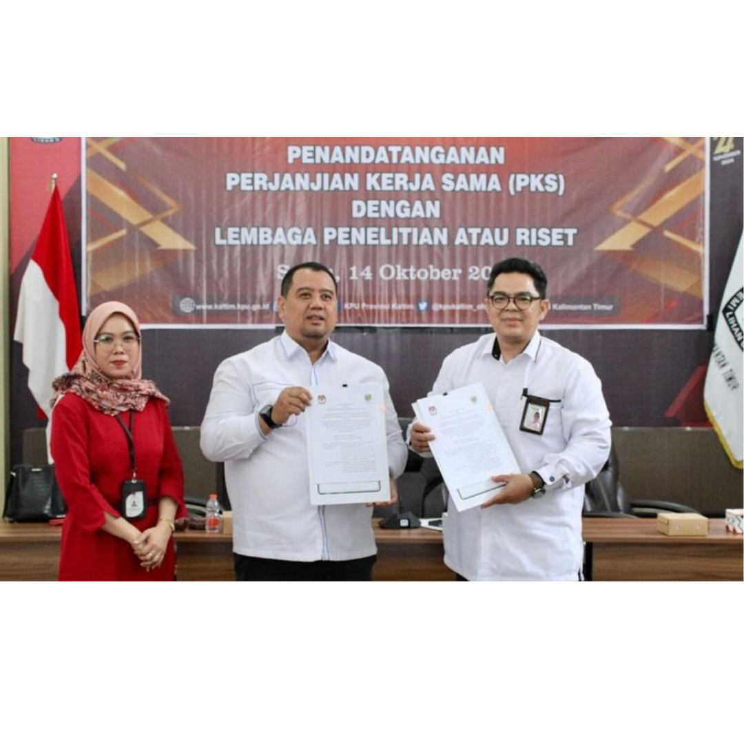 samarinda, kaltim.kpu.go.id - KPU Provinsi Kalimantan Timur telah melaksanakan Penandatanganan Perjanjian Kerja Sama (PKS) dengan Lembaga Penelitian dan Riset di Aula Kantor KPU Provinsi Kalimantan Timur, Senin (14/10/2024). Hadir sebagai undangan 5 Universitas yang bekerja sama yaitu Universitas Mulawarman, Universitas Widya Gama Mahakam, Universitas Tujuh Belas Agustus 1945, Universitas Islam Negeri Sultan Aji Muhammad Idris Samarinda, dan Universitas Muhammadiyah Kalimantan Timur. Ketua KPU Provinsi Kalimantan Timur, Fahmi Idris, didampingi oleh Anggota KPU Provinsi Kalimantan Timur yang membidangi Divisi Perencanaan, Data dan Infomasi, Iffa Rosita, hadir membuka kegiatan. Dalam sambutannya Ketua menyampaikan bahwa dari kaca mata penyelenggara, Pemilu Serentak yang telah dilaksanakan kemarin dinilai sangat sukses dengan tingkat parmas yang mencapai target. Namun beberapa hal masih perlu dikaji lagi terkait penyebab parmas yang belum maksimal. Selanjutnya setelah penandatanganan kerja sama, kelima universitas tersebut akan melaksanakan penelitian dan riset dengan tema yang telah ditentukan.