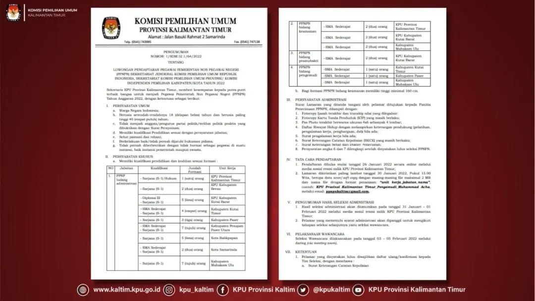 Samarinda (24/02/2020) - Berdasarkan Tahapan, maka kegiatan penyerahan dukungan Bakal Pasangan Calon Perseorangan yang diserahkan kepada KPU Kabupaten Kota sejak hari Rabu, tanggal 19 Februari 2020 berakhir pada hari Minggu, tanggal 23 Februari 2020 pukul 24.00 Wita.
